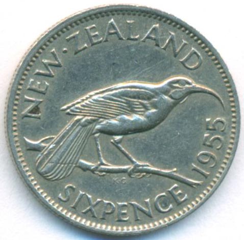 Новая Зеландия, 6 пенсов 1955 год