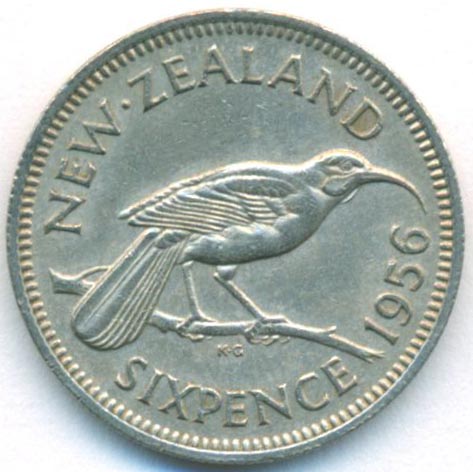 Новая Зеландия, 6 пенсов 1956 год