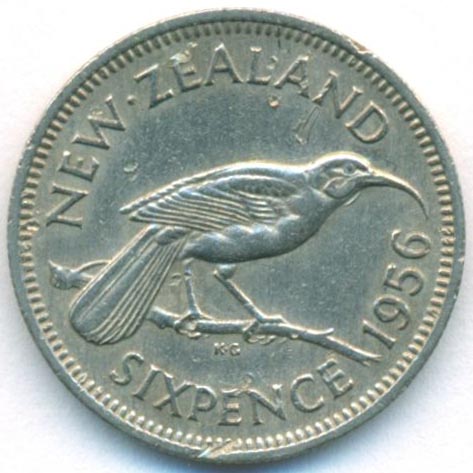 Новая Зеландия, 6 пенсов 1956 год