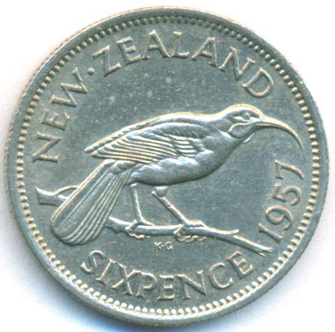 Новая Зеландия, 6 пенсов 1957 год