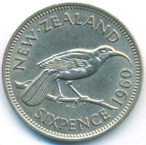 Новая Зеландия, 6 пенсов 1960 год (AU)