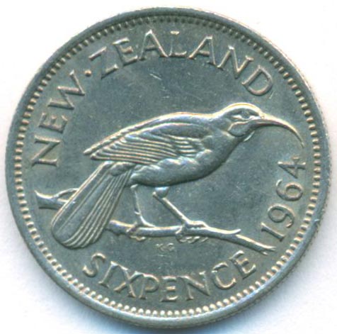 Новая Зеландия, 6 пенсов 1964 год