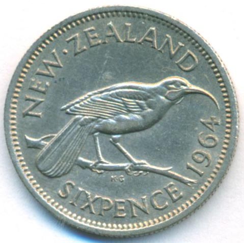 Новая Зеландия, 6 пенсов 1964 год