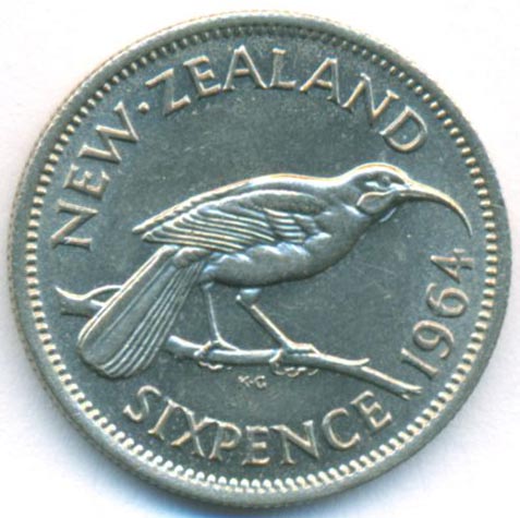 Новая Зеландия, 6 пенсов 1964 год (AU)