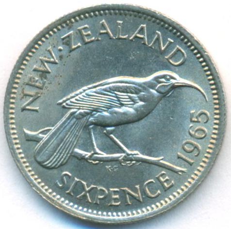 Новая Зеландия, 6 пенсов 1965 год (UNC)