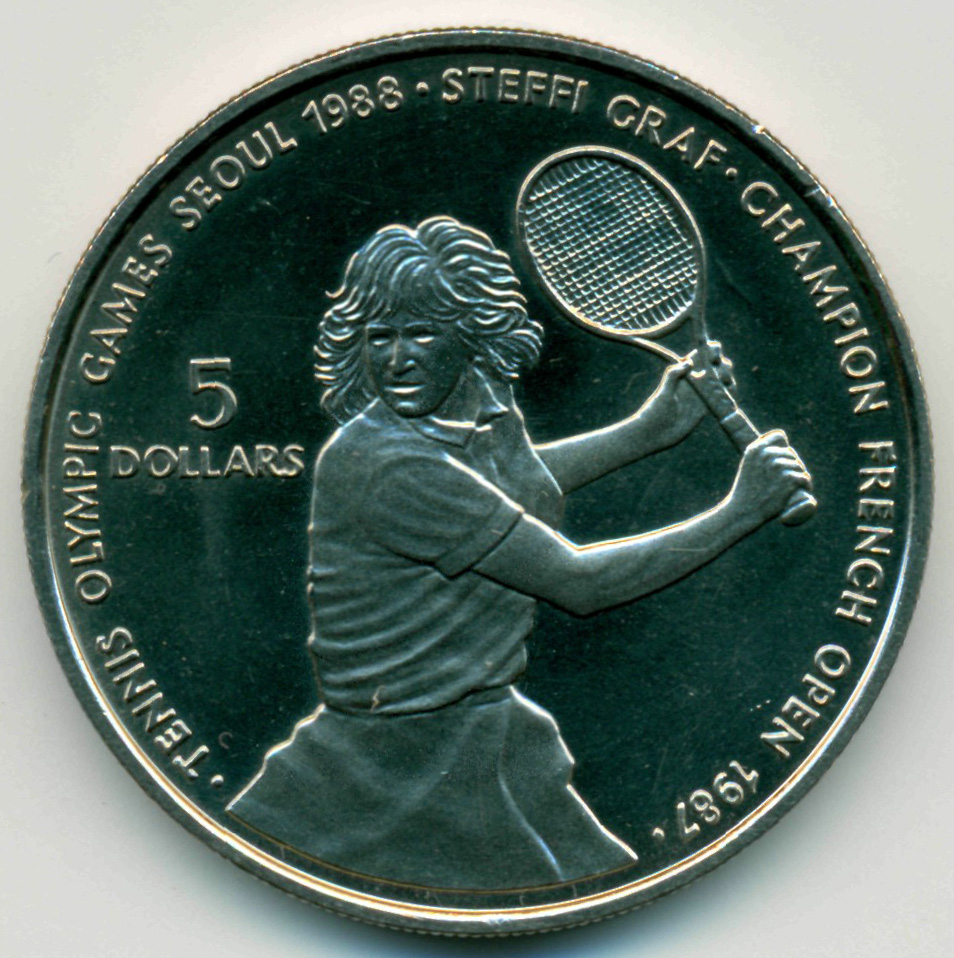 Памятная монета, посвященная возвращению большого тенниса в медальную программу летних Олимпийских Игр, Сеул (Корея) 1988 год.