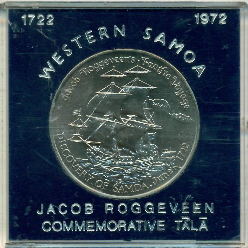 Памятная монета, посвященная 250-летию открытия европейцами архипелага Самоа.