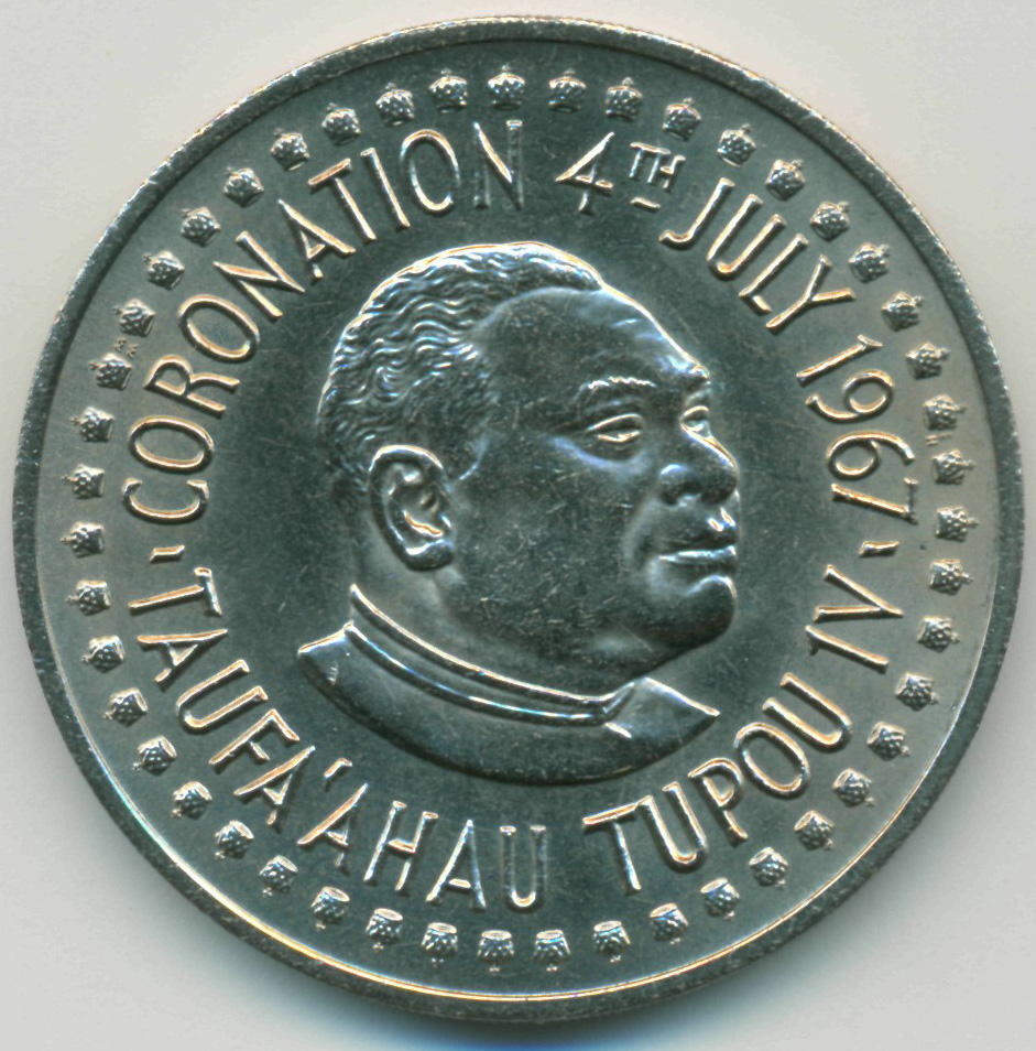Памятная монета, посвященная коронации Тауфаахау Тупоу IV - 04 июля 1967 год.