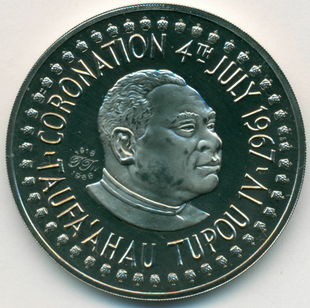 Памятная монета, приуроченная к коронации Короля Тауфаахау Тупоу IV, 04 июля 1967 годa.