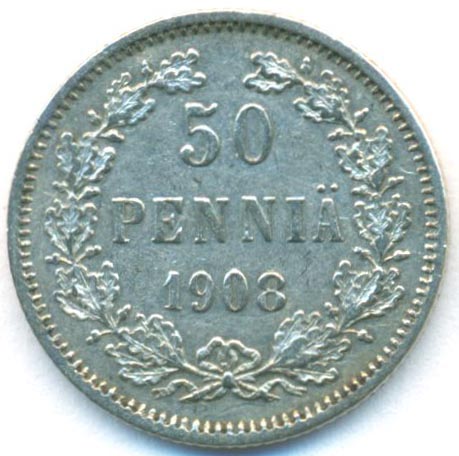 Княжество Финляндия, 50 пенни 1908 год L