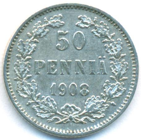 Княжество Финляндия, 50 пенни 1908 год L