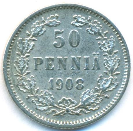 Княжество Финляндия, 50 пенни 1908 год L