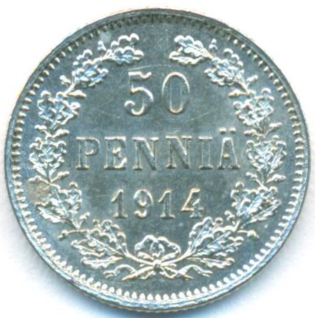 Княжество Финляндия, 50 пенни 1914 год S (UNC)
