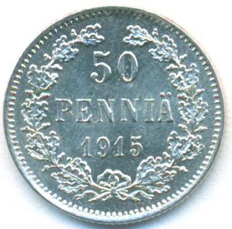 Княжество Финляндия, 50 пенни 1915 год S (UNC)