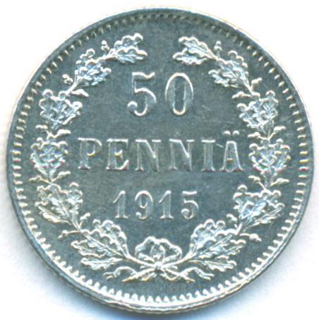 Княжество Финляндия, 50 пенни 1915 год S (UNC)