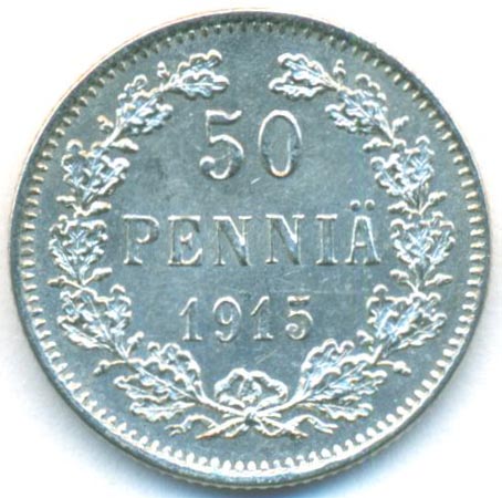 Княжество Финляндия, 50 пенни 1915 год S (UNC)