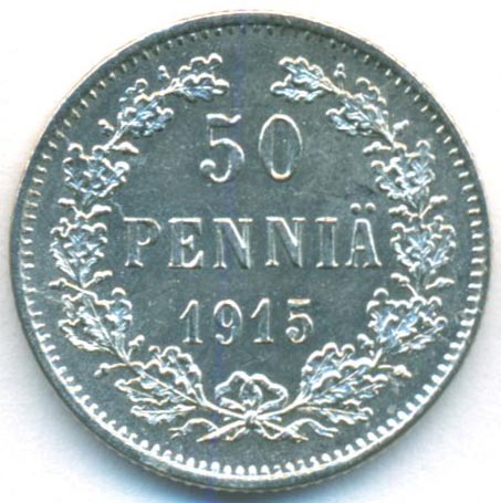 Княжество Финляндия, 50 пенни 1915 год S (UNC)