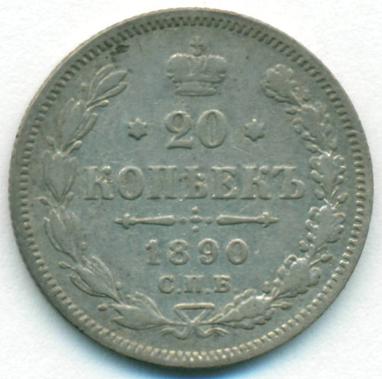 20 копеек, 1890 год СПБ АГ