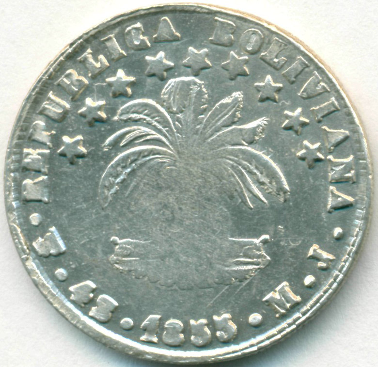 Боливия, 4 соля 1855 год PTS МJ