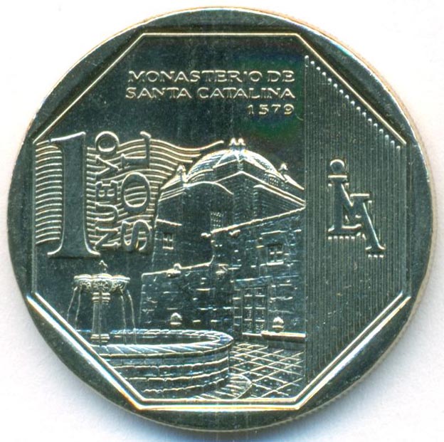 Коллекционная монета из серии "Богатство и гордость Перу". Монастырь Санта-Каталина.