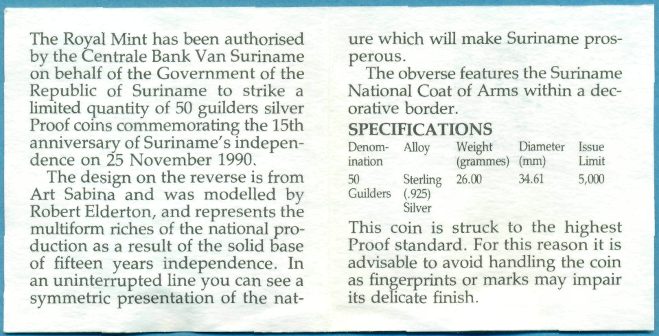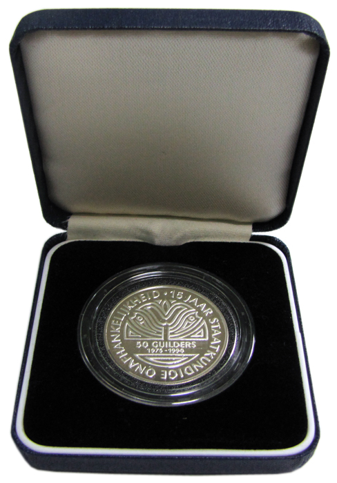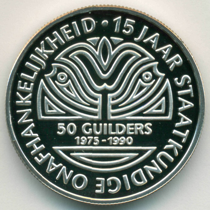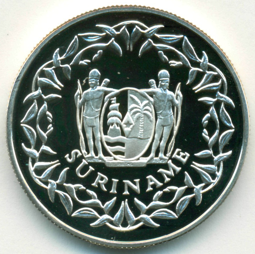 Юбилейная монета, посвященная 15-ой годовщине независимости Суринама от Нидерландов - 25 ноября 1975 год.