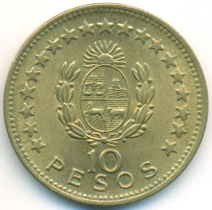Уругвай, 10 песо 1965 год (UNC)