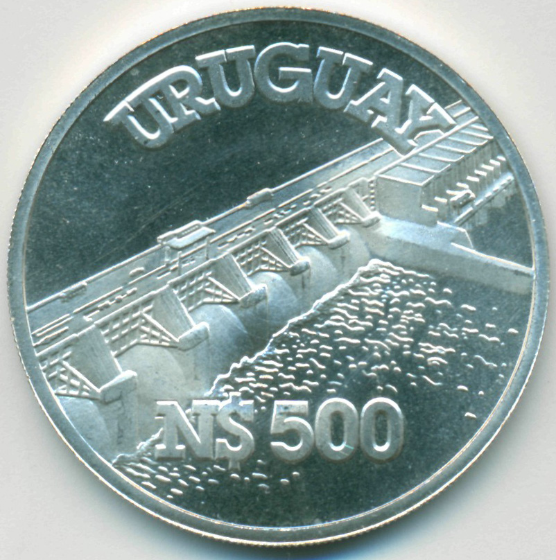 Коллекционная монета. Дамба Сальто-Гранде - большой гидроэнергетический узел на реке Уругвай, между Канкордией (Аргентина) и Сальто (Уругвай).