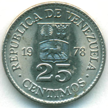 Венесуэла, 25 сентимо 1978 год (UNC)