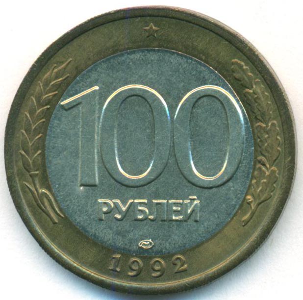 Россия, 100 рублей 1992 год ЛМД (AU)