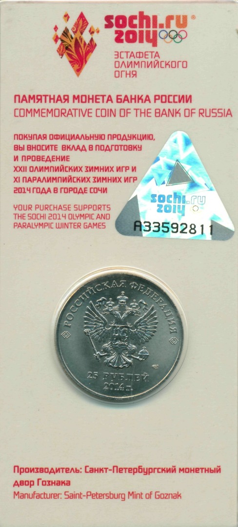 Памятная монета, посвященная проведению XXII зимних Олимпийских игр в Сочи, 2014 год.