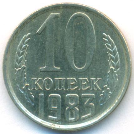 СССР, 10 копеек 1983 год (AU)