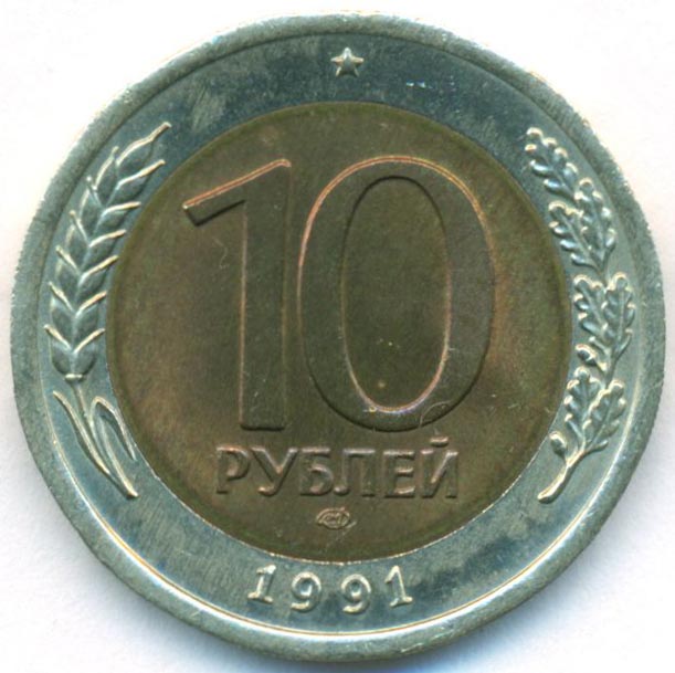 СССР, 10 рублей 1991 год ЛМД (AU)