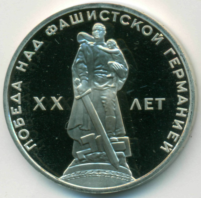 Юбилейная монета, приуроченная к 20-й годовщине Победы над фашизмом во Второй Мировой войне.