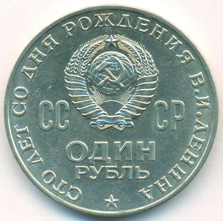 Памятная монета, посвященная 100-летию со дня рождения Владимира Ильича Ленина (Ульянова) - российского революционера, одного из руководителей и организаторов Октябрьской революции 1917 года, создателя первого в мировой истории социалистического государства.