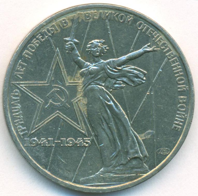 Юбилейная монета, приуроченная к 30-й годовщине Победы над фашизмом во Второй Мировой войне.