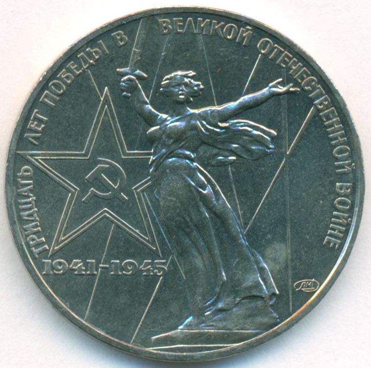 Юбилейная монета, приуроченная к 30-й годовщине Победы над фашизмом во Второй Мировой войне.