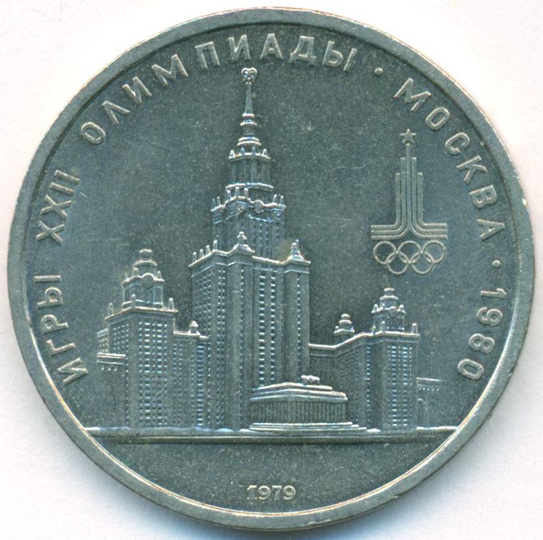 Памятная монета, приуроченная к проведению XXII летних Олимпийских игр в Москве, 1980 год. Здание МГУ.