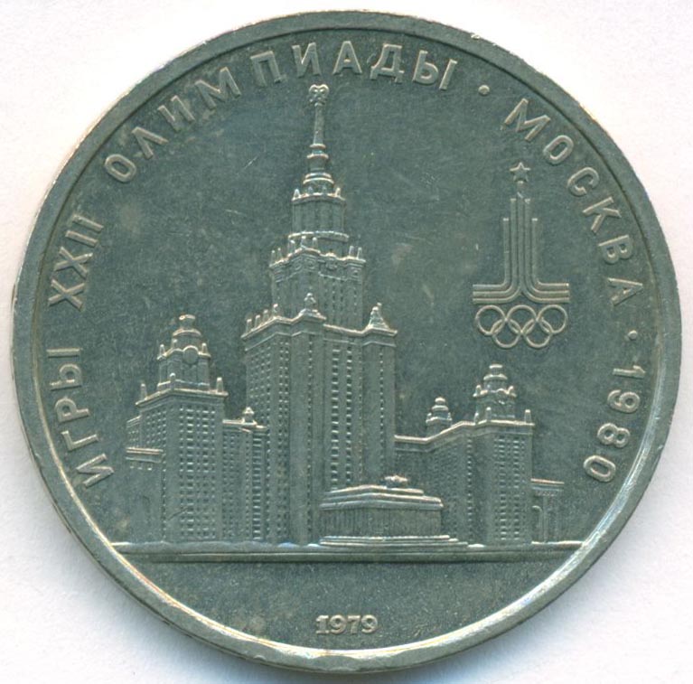 Памятная монета, приуроченная к проведению XXII летних Олимпийских игр в Москве, 1980 год. Здание МГУ.