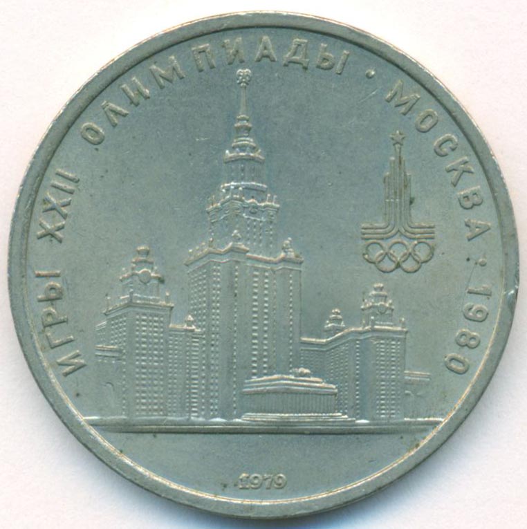 Памятная монета, приуроченная к проведению XXII летних Олимпийских игр в Москве, 1980 год. Здание МГУ.
