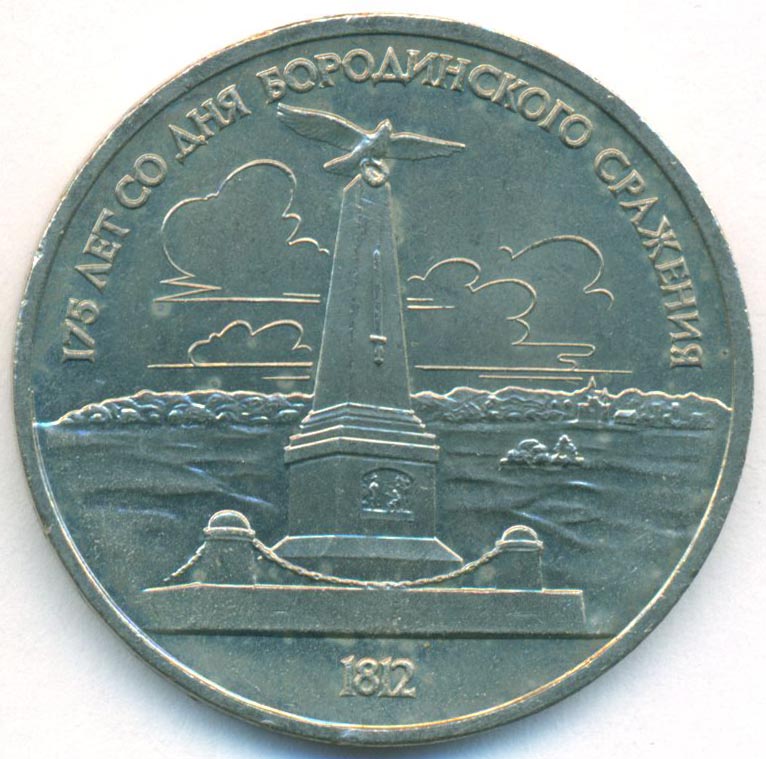 Памятная монета, посвященная 175-й годовщине со дня Бородинского сражения 1812 года.