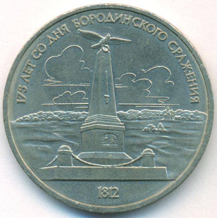 Памятная монета, посвященная 175-й годовщине со дня Бородинского сражения 1812 года.