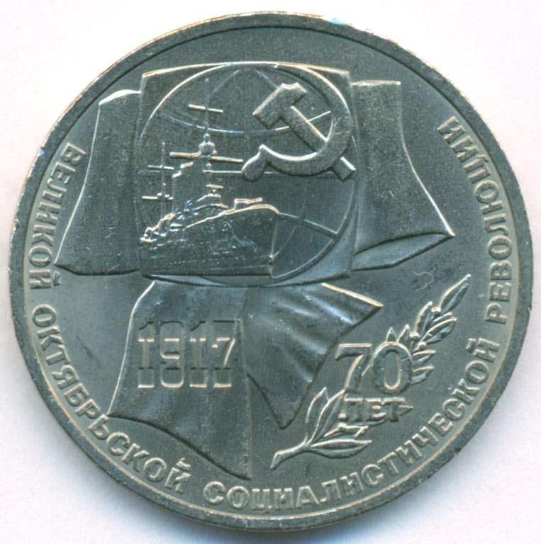 Юбилейная монета, посвященная 70-й годовщине свершения Великой Октябрьской Социалистической Революции, 1917 год.