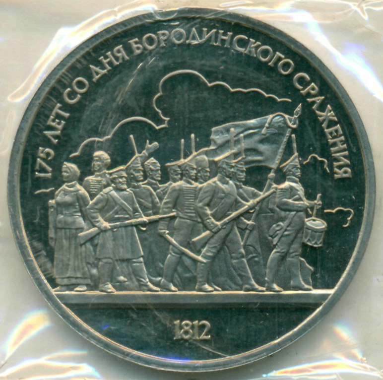 Памятная монета, посвященная 175-й годовщине со дня Бородинского сражения 1812 года.