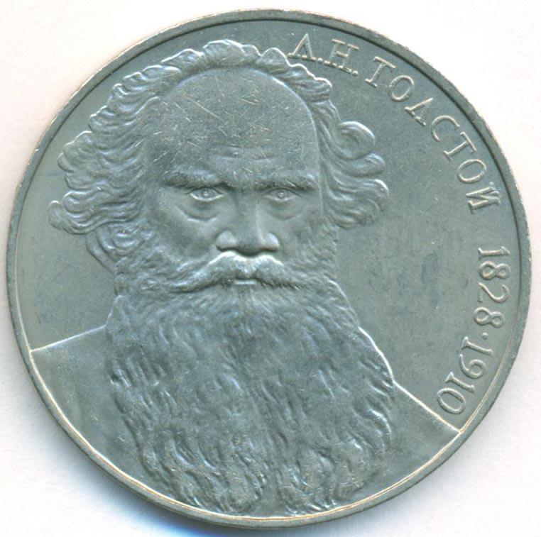 Памятная монета, посвященная 160-й годовщине со дня рождения Льва Николаевича Толстого (1828-1910) - русского писателя и мыслителя, одного из величайших писателей мира.