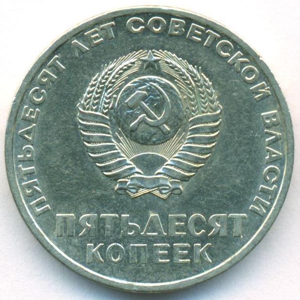 Монета из серии "Пятьдесят лет Советской власти".