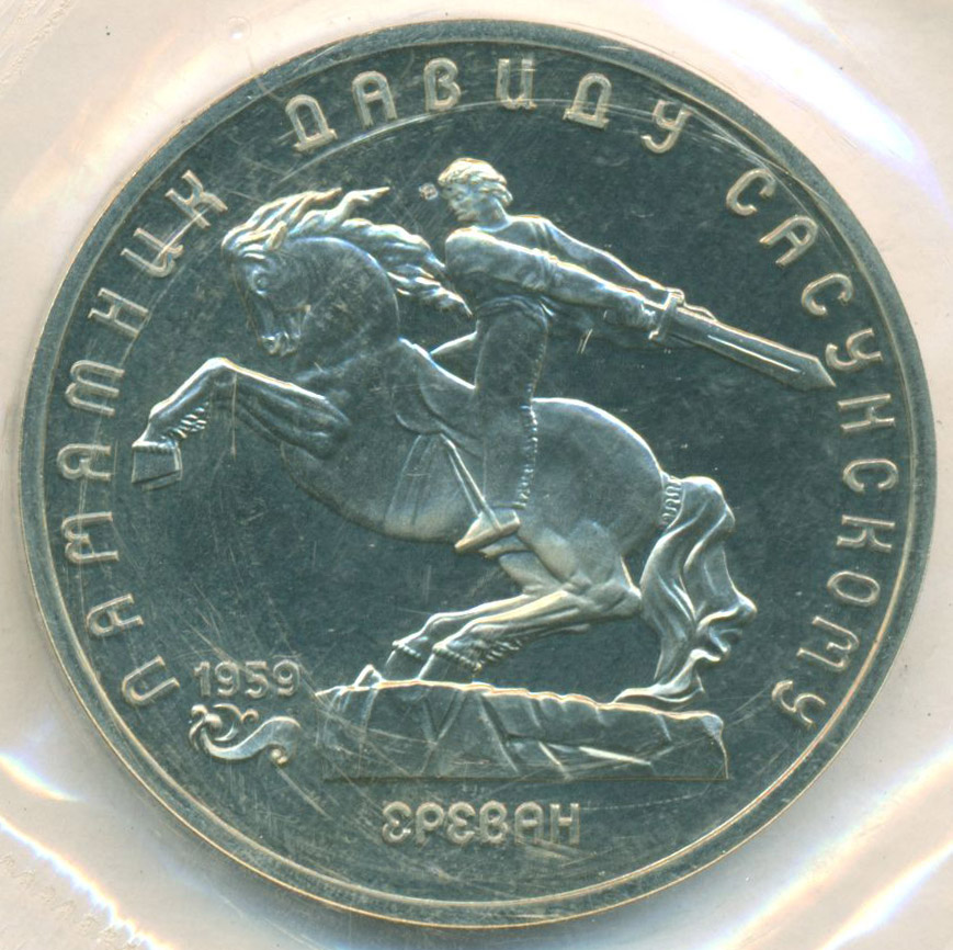 Коллекционная монета. Памятник Давиду Сасунскому в Ереване.