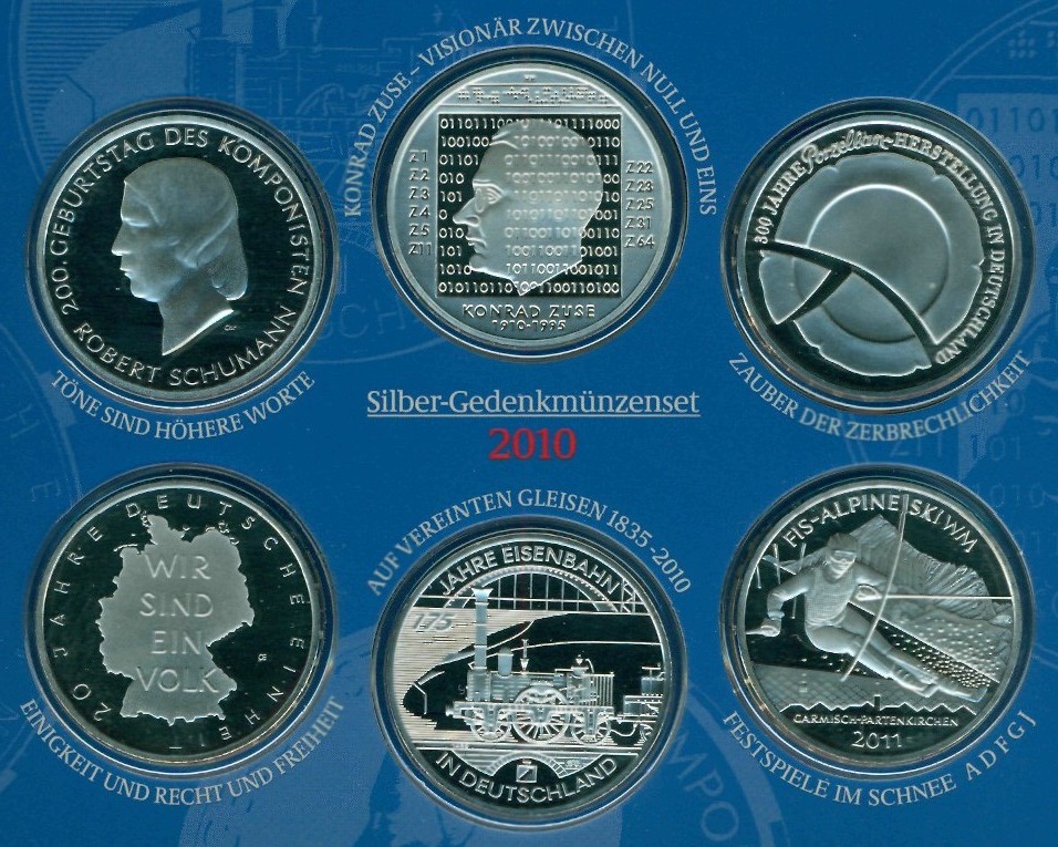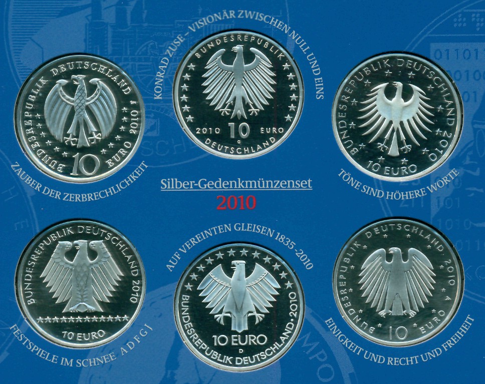 Официальный годовой набор серебряных монет номиналом 10 евро, выпущенный в 2010 году.