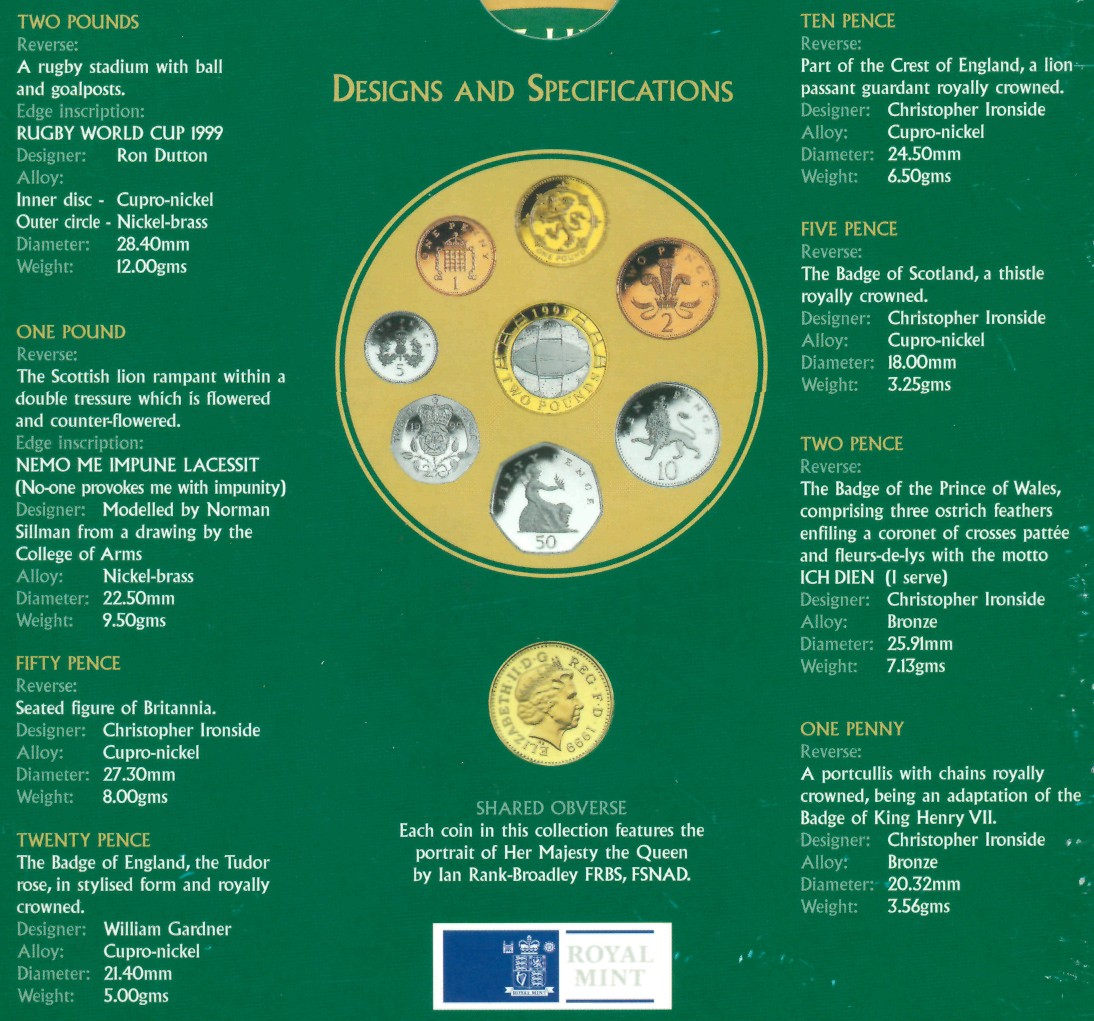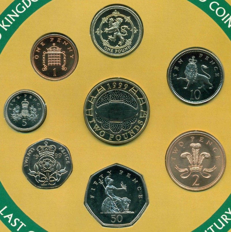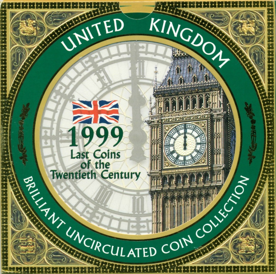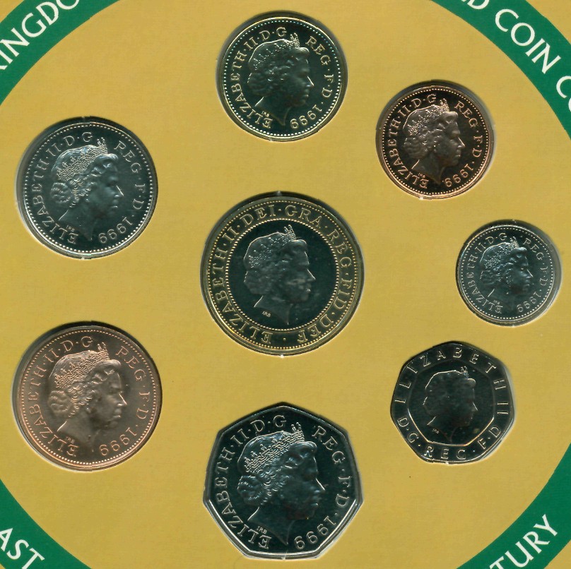 Годовой набор монет, выпущенных Королевским монетным двором Великобритании, в 1999 году.