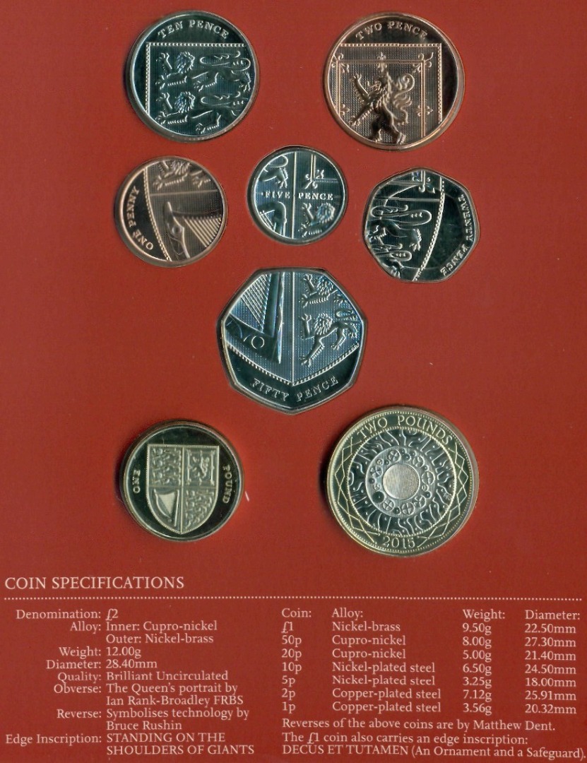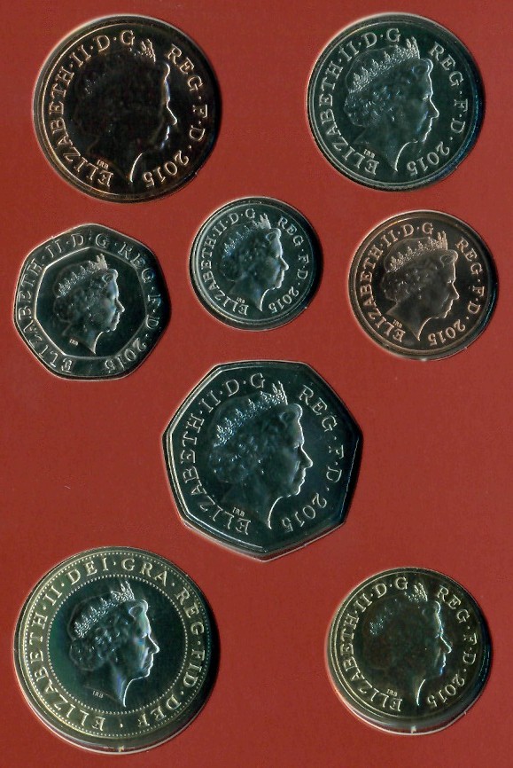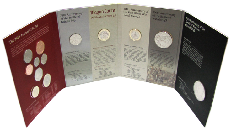 Полный годовой набор монет, выпущенный Королевским монетным двором Великобритании в 2015 году.