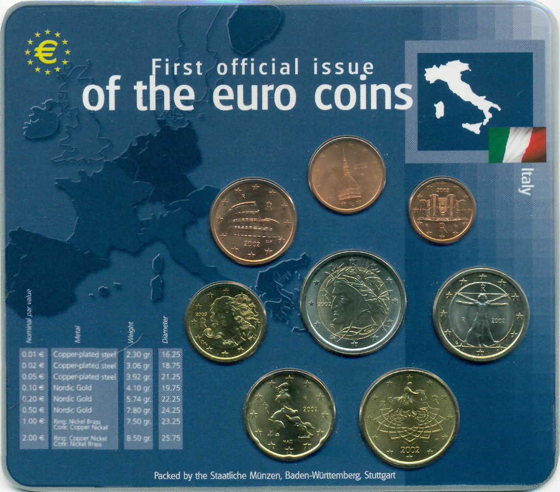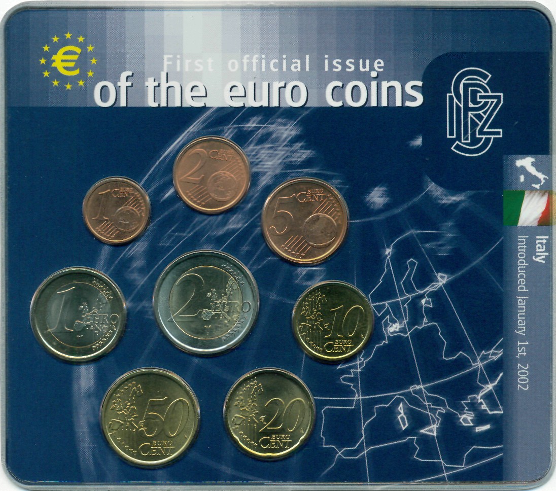 Годовой набор евромонет, выпущенных в 2002 году.